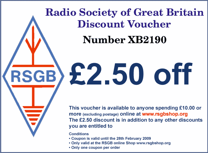The RSGB are offering a £2.50 discount on orders over £10 placed with the RSGB shop online at www.rsgb.org